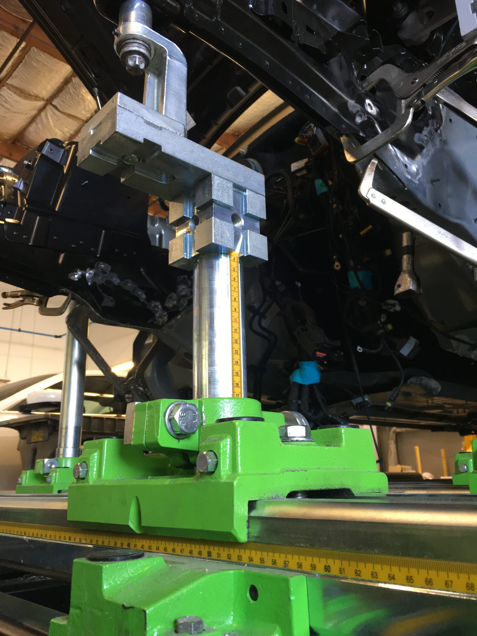 Most vehicle structures are made up of sheet metal, either aluminum, steel or some use carbon fiber, or a combination of any of them making up a structure by welding, riveting, and or adhesives or a combination of those as well. The first part of a repair when it comes to structure is diagnosis of the damage by measuring the factory tolerances vs. the after collision measurements to determine the extent of the structural misalignment. This can be done in a few ways. Either by a fixed jig system that has specific fixed mounting points that align with an undamaged structural alignment holes that determine if the structure is misaligned. This is the same way they build multiple vehicles with exact same precision of structural alignment is by assembling the parts together on a jig to insure perfect alignment of an infinite amount of identical structural bodies.