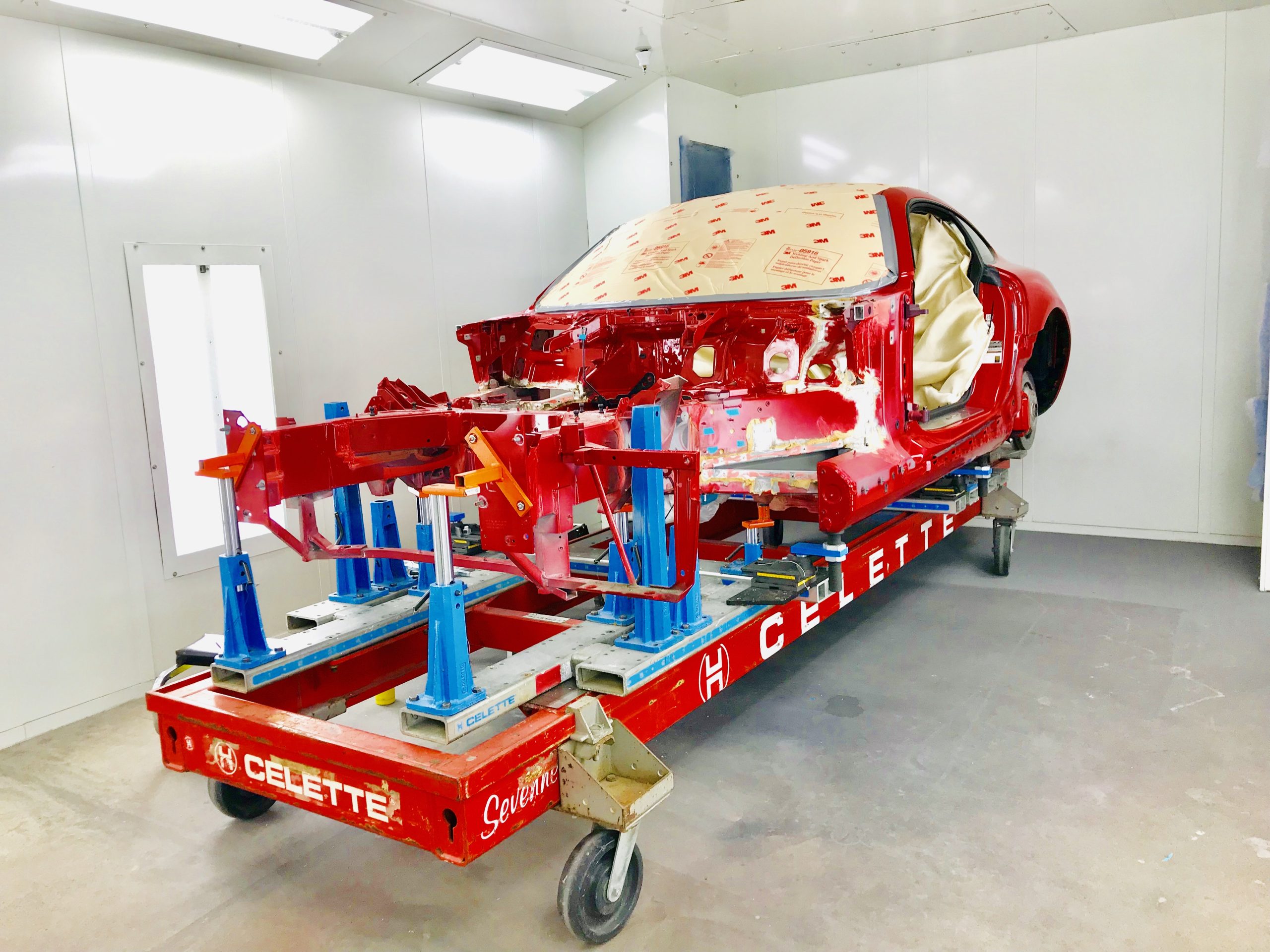 The second is by measuring with a laser or a GPS type system that measures tolerances of chosen platforms to less than a millimeter efficiency which is within the factory allowed tolerances of any and all automotive manufacturers. Anthony’s uses both Fixed Jig and GPS frame measuring systems to employ whatever factory suggested repair techniques are required for your vehicles make and specific model. Anthony’s Auto Craft uses Cellette, Car-O-Liner, and Global Jig, frame bench systems to repair specific required manufactured vehicles.